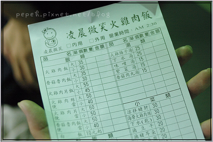 晚上還擔心著會不會爬不起來,幸虧有朋友幫忙叫醒,我們準時凌晨2點半出發到文化路吃火雞肉飯,凌晨的嘉義市真的很好開,車子很少,人也很少,開在文化路上還一直想著會不會沒開呢?
