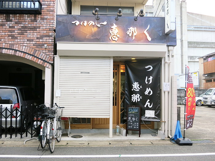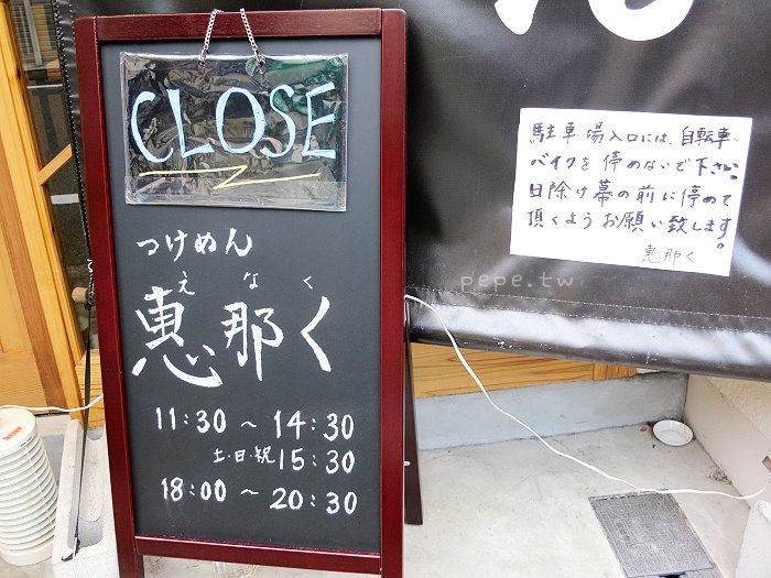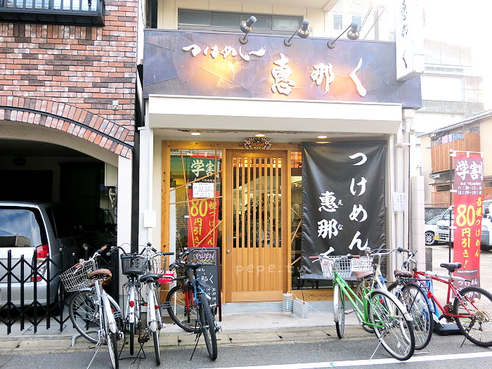 結束大原一日小旅行後,為了善用京都觀光一日乘車券,坐巴士回程的路上,臨時決定在修學院一帶下車吃飯,從左京區雜誌中看到つけ麺的店家介紹,多半吃拉麵的我們也想嚐嚐沾麵的味道,於是選了惠那く做為晚餐食處。
