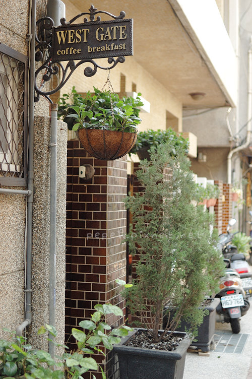 走進小小的巷弄裡,w先找到WEST GATE的典雅招牌,招牌下懸掛好看的植物,就連店內外都可以看到許多長得漂亮的植栽,充滿綠意的咖啡店,吃著早餐,真是愜意。
