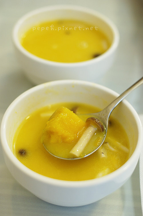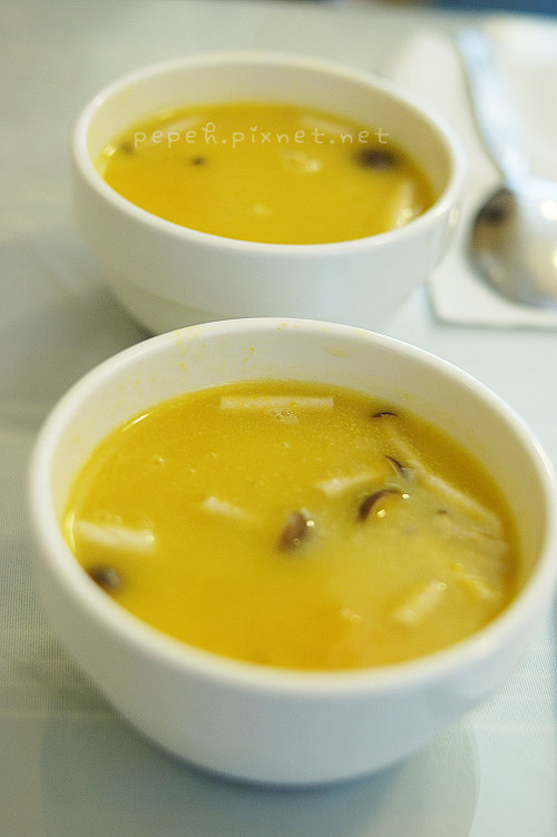 南瓜濃湯,加了南瓜(地瓜?)和菇類,不太喜歡菇類和南瓜的我,看到這道湯品原本一直皺眉,