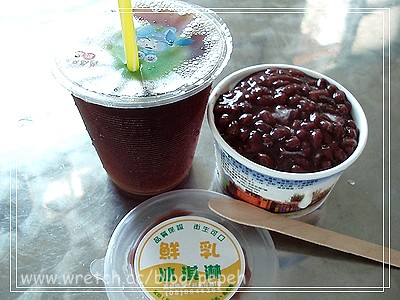 其他的也照慣例,買了一杯紅茶、一個紅豆鮮奶冰,紅豆是滿滿的,真大方..^^