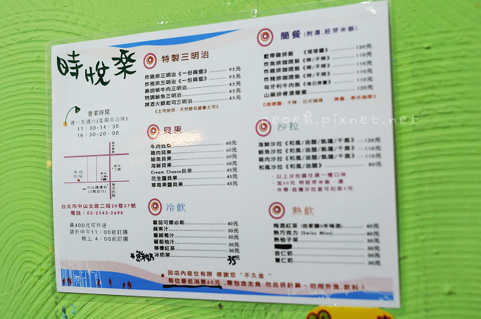 牆上不經意張貼的藝文資訊,為時悅樂添了點不一樣的氣息,感覺有點像高雄的阿貴食堂。