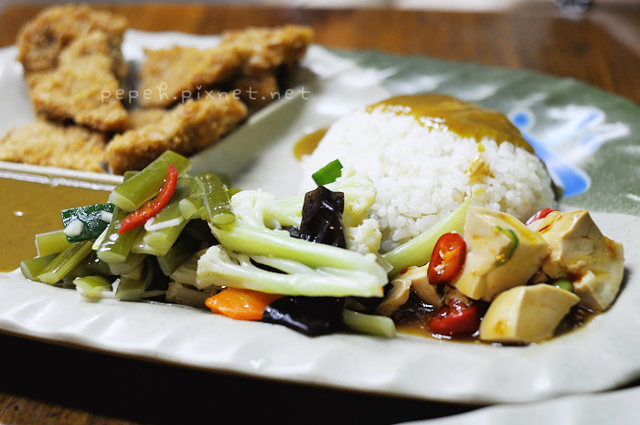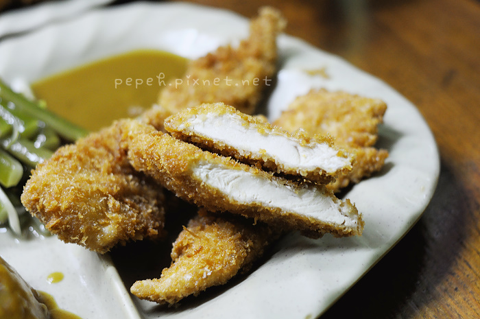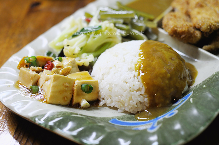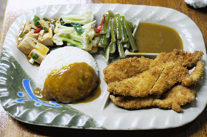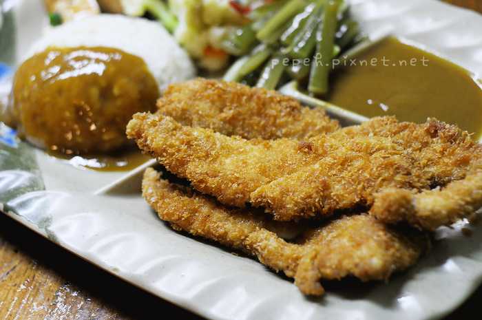 炸豬排咖哩飯,110元,配菜與炸雞排咖哩飯同,差別只是在於雞排與豬排。