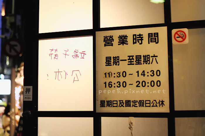 營業時間: 星期一 ~ 星期六 11:30~14:30,16:30~20:00 (last order) 公休日: 星期日