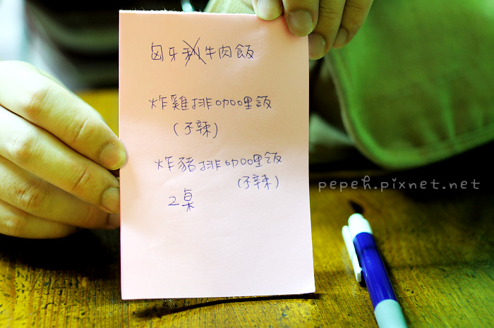 選好餐點後,自行寫在紙條上再拿給店家即可。