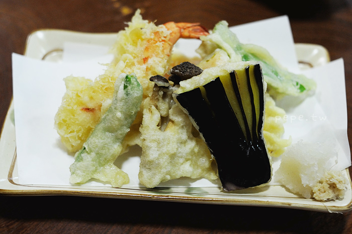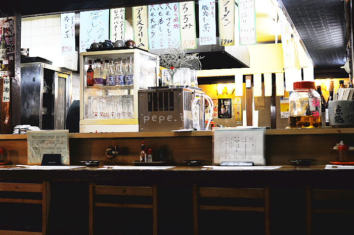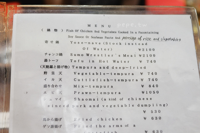 點龍位於花見小路上,不是常可看到舞妓藝妓出現的那條花見小路,而是越過四条的另外一邊,點龍看起來像是家常式的居酒屋,外頭放有各式食物模型,菜單很貼心的有日文、英文相對照,不太餓的我們,只點了梅酒、清酒、炸雞、天婦羅等一起合吃,來到點龍,千萬不要錯過梅酒這一味,梅酒是點龍自家釀製,格外酸甜夠味,搭配炸得多汁又不油膩的炸物,天婦羅有地瓜、蝦、紅蘿蔔、茄子、菇和扁豆,酥脆又不膩的外皮,吃來真是清爽,開胃又滿足,一行人吃完共計花3150円,與好友坐在榻榻米上暢談,值得。