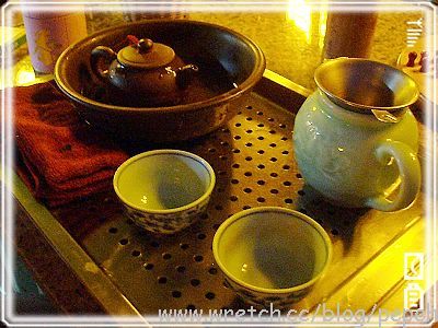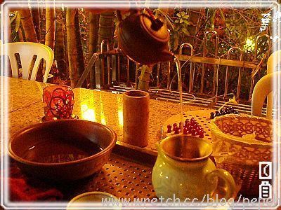 一走上去,燈火通明的茶坊立現於前,可能是因為平常日的關係,客人並不多,聽說到假日,整個貓空會擠滿了泡茶的人潮..