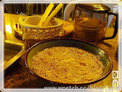雖說這種茶葉是不傷腸胃的品種,但光喝茶不吃東西實在是有點虐待自己,我們點了茶油麵線來安撫自己的胃,兩人份100元,老闆端過來時,那香氣逼人,使得旁邊坐的那家人也忍不住點了一份..