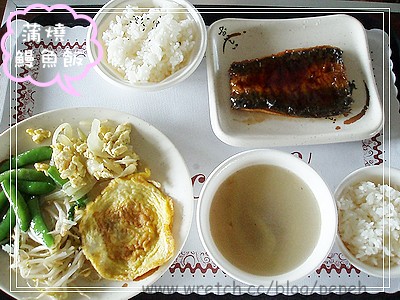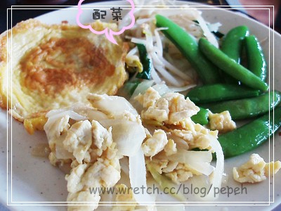 配菜有豆芽菜、豆莢、蛋和洋蔥蛋,跟我平日吃的便當配菜很像,實在少了點吸引力讓人下箸。