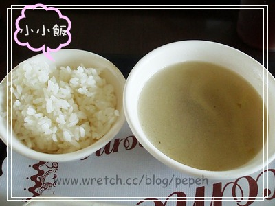 最上面的那碗飯是我的,簡餐附的飯是右下角小小飯,有點小氣,以男生而言怎麼可能吃得飽呢?