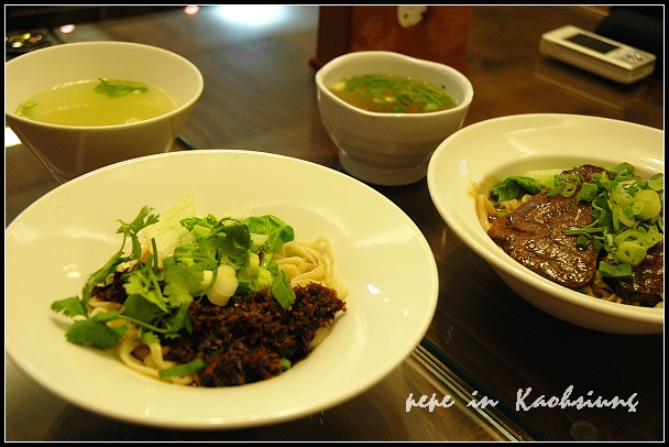 ●這張照片的用意在於那兩碗湯,牛肉乾拌麵的湯頭比干貝乾拌麵的清爽好喝,woodstock僅喝了一口,馬上見分明。