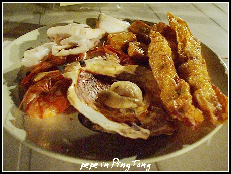 我們吃的食物,我的食物盤中,海鮮一大堆。
