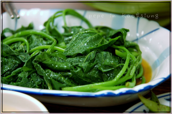 ●燙青菜,30元。我們選的燙青菜是地瓜葉,另有高麗菜、空心菜等選擇。