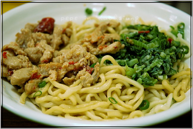 ●雪菜辣雞拌麵,70元。看到麵和辣雞上的辣椒,就知道這道拌麵帶點微辣,