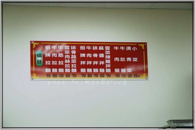 ●牆壁上的價目表。