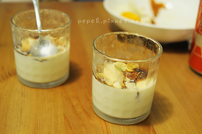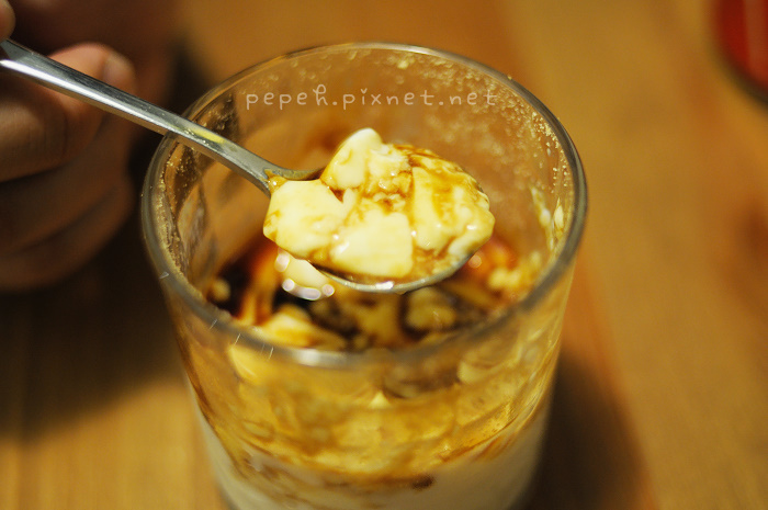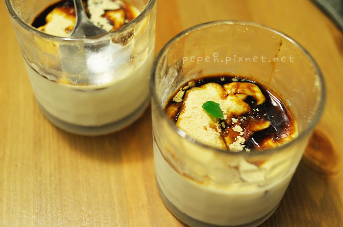 黑糖豆腐酪,感謝男主人招待,上回吃到好喜歡,灑了黃豆粉的豆奶布丁,吃起來香又滑嫩。