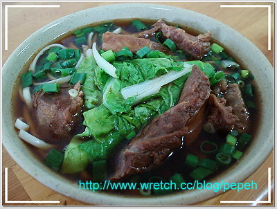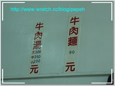 肉也很大塊,不過不到10塊啦,7塊而已。我覺得麵條真的沒啥特色,沒有越嚼越有味(不過pepe敢吃耶),湯也普普,不過都比x灣牛好啦!這是啥心態呀!哈~~肉真的滿好吃的!下次來點牛肉湯就好了!由於不會很餓,只是來尋找心中失落的"牛肉麵店",所以沒把麵吃完,懷著歉疚的心向老闆娘道歉,說明之前已經吃了點東西才來,所以才沒吃完..XD