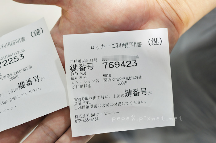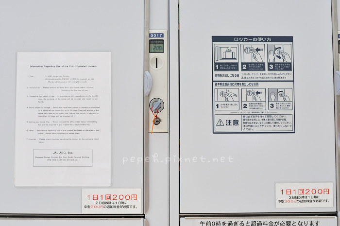 抵達關西空港後,不想拖行李去outlet,先找行李櫃寄放行李,以為找到3小時300円已經夠便宜,待我們放好行李後,再往前一瞥,竟然發現一日一回200円的寄物櫃,對已經寄好行李的我們只好對自己說殘念…