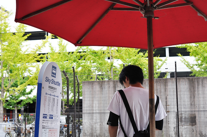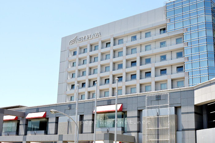 到AERO PLAZA這棟建築物一樓等接駁車。
