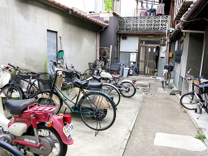 翻著手中的京都咖啡書,這日吃完早午餐後,決定去清水五条附近的照明器具と喫茶室 ,這家店在低調的路地裡,找到大黑湯公共澡堂,就可看到這條有趣的小巷子,這條巷子裡有許多町家,許多職人在這裡開設自己的工作室,照明器具と喫茶室便是其一,來這裡可以逛逛其他店家,像是手作市集的迷你版,有印章、手工帆布鞋、燒菓子店等,一家家的進去看職人的手作商品是散步的趣味。此外,這裡對騎腳踏車的旅人很友善,巷子最裡面就有腳踏車的停放處,感覺好貼心~^^