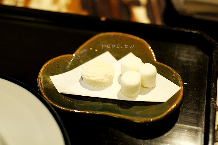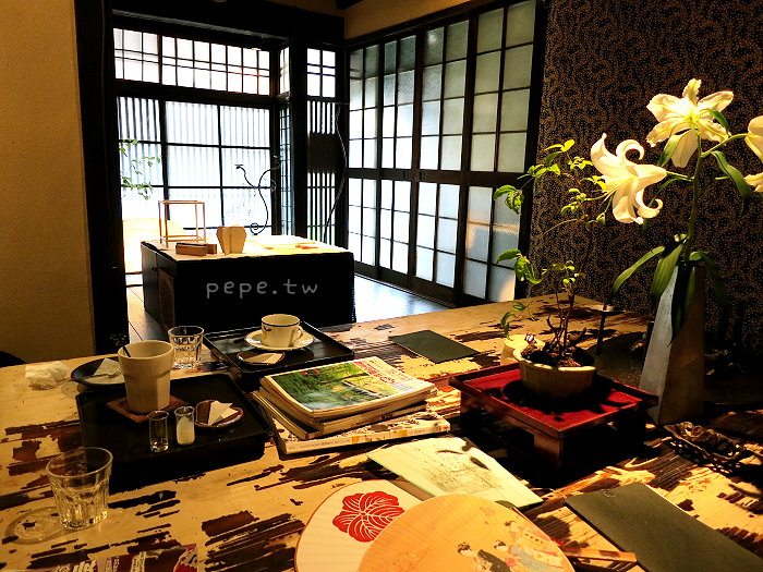 女主人相當健談,親切的搬出一堆京都書籍雜誌給客人看,讓女主人花了一些時間找出手作的名片,名片相當別緻好看,點了冰咖啡、熱咖啡與蛋糕,蛋糕是輕乳酪蛋糕,有檸檬香氣,冷熱咖啡均附和三盆,有三顆綿花糖與小糕餅,愉快的町家午茶時光讓人回憶再三。