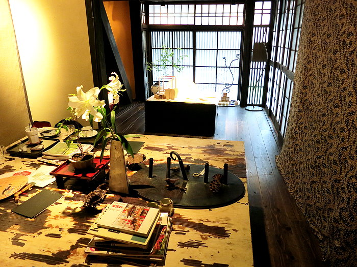 這家以照明燈具為主題的喫茶室,也是喝咖啡的地方,原本11:30開,這日因故臨時改成12:30開,突然多了一個多小時的空白時間,到附近巷子走走,並可以悠閒的逛逛其他店家,買了杏仁燒菓子230円,路地裡的手拭巾1000円是每一家手作工作室均販賣的商品,也買了一條送給好友,一直逛到12:30,喫茶室終於開了,一直以為是很有個性的男老闆開的,出乎意料的是,主人是一位很有氣質的女生,有各式燈具展示,也有一張大桌供大家坐下來喝茶與咖啡,這張大桌目測約可坐7-8人吧!