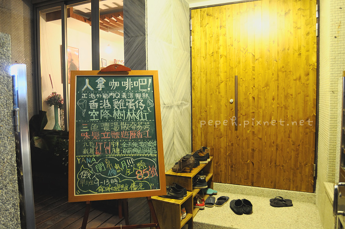 後來才發現找到大門直走進去,先脫鞋再推開門,就可進入人拿咖啡吧的客廳了,當我們詢問是否可拍照時,老闆帶些香港腔調的普通話直爽說著:當然可以,盡管拍、用力拍,狂拍!