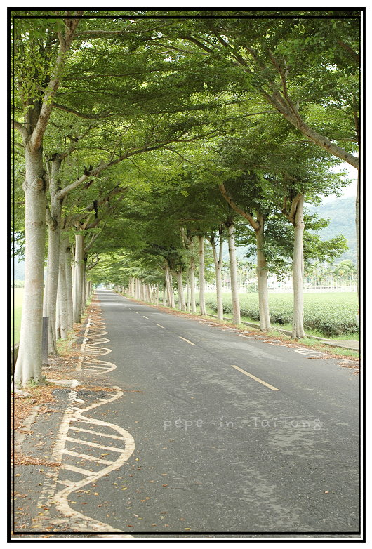 一整排的小葉欖仁樹,是舒服的綠色隧道,在抬頭的某個角度還可發現貫串成愛心狀的樹枝,有緣人才看得到..^^