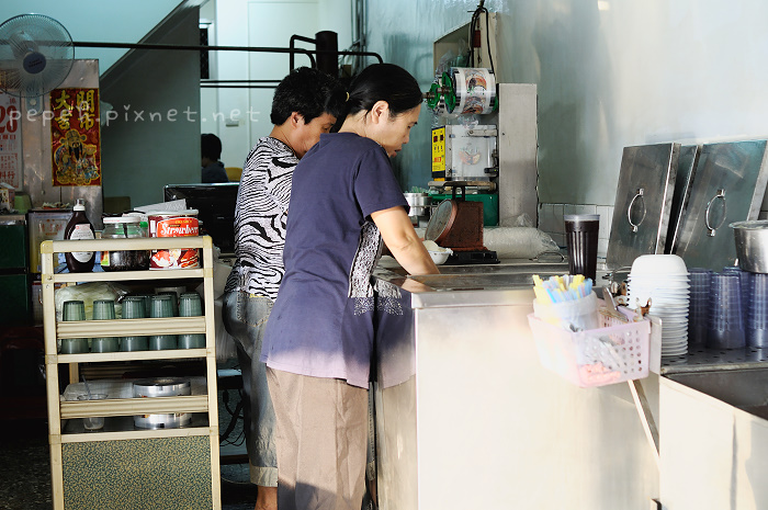 要不是早已把維美冰店的門牌號碼記下來,即使不小心經過這條巷子,應該不會發現這裡竟然有家生意很好的冰店,把近三戶的亭仔腳做為內用座位區,假日午後吃冰的人真的好多,維美冰店四個字僅在室內的價目表看到,天氣轉涼時,還有冬季限定的熱食,甜不辣、熱狗、黑輪、脆片和雞塊,下午去,熱食賣到只剩下熱狗和雞塊,其他的都賣光了,猜想這些熱食會不會都是炸物,點了一支熱狗,愛吃熱狗的友人嚐了一口後立刻說好吃,另外還點了一杯紅茶和巧克力花生雪乳冰,巧克力花生雪乳冰的份量看起來小小的,其實並不然,二個人分食剛剛好,冰的份量也是用秤重的方式盛取,一杯10元的紅茶也好大一杯,便宜又好吃,難怪巷子裡的冰店人氣旺~^^