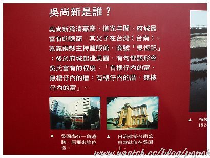 第三個大吃一驚的點是:吳尚新是誰?這個名字聽來陌生,但如果說到”吳園”,嘿…印象就深刻了吧!沒錯!原來台南的吳園就是因為賣鹽而富的呀!