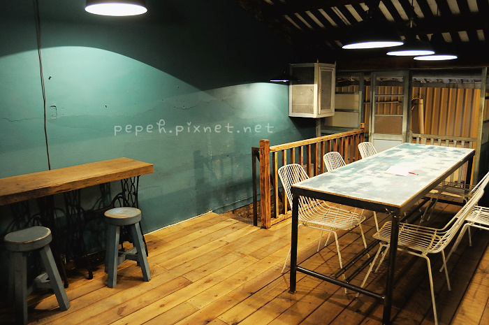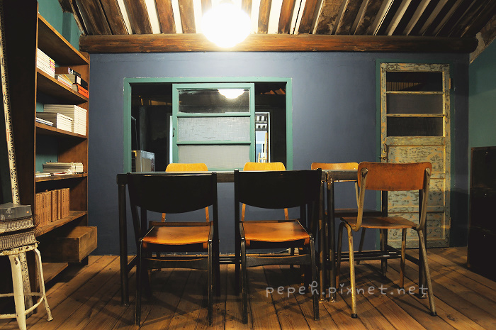 太古101晚上燈光亮起時,一樓大面開窗,一覽無遺,坐在靠窗位子上或是吧台的人兒姿態看起來就是很享受,推開門,一樓和二樓都有位子,選擇二樓空間的我們是因為二樓陽台上的光影,獨佔大桌子也很愜意,老物與老空間搭配得宜,安靜的傍晚氣氛十分佳,好喜歡老建築的空間感,餐點以輕食飲料為主,價格略高,點了一份蜂蜜鬆餅 150元,附大吉嶺茶、茉香綠、美式黑咖啡、鮮榨果汁等任選其一,點其他飲品折扣50元,想點espresso(90元),比單點的美式黑咖啡 100元便宜10元,原以為應該不用加價,沒想到詢問後的答案是仍需加40元,即便espresso比美式黑咖啡便宜(本想開玩笑,請他黑咖啡不要加熱水,就是一杯espresso了XD)