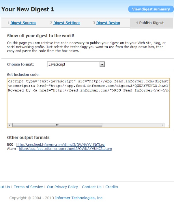 7.下一步,publish digest,已自動產生程式碼,貼到blog中就可以了。